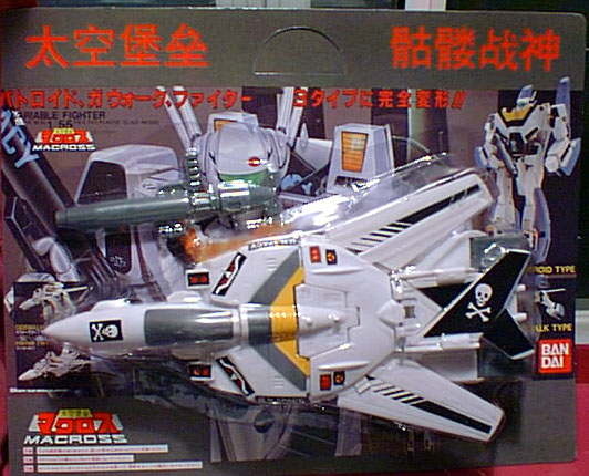 Une piètre réplique du VALKYRIE VF-1S que bandai avait produit à la fin des années 80 en boite "Super Valkyrie" reconnaissable à son menton arrondi. A noter qu'il existe 4 blisters différent dont un carrément estampillé Robotech Macross!