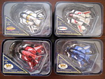 En ce qui concernne les boites de 4, bien que le coffret standard a été présenté au Salon "Fall Toy Show" en 2003 au USA, je ne les ai jamais vu en vente.