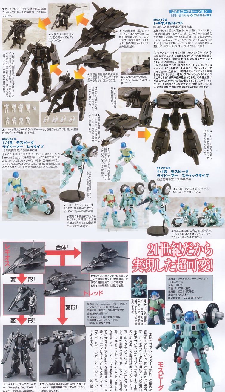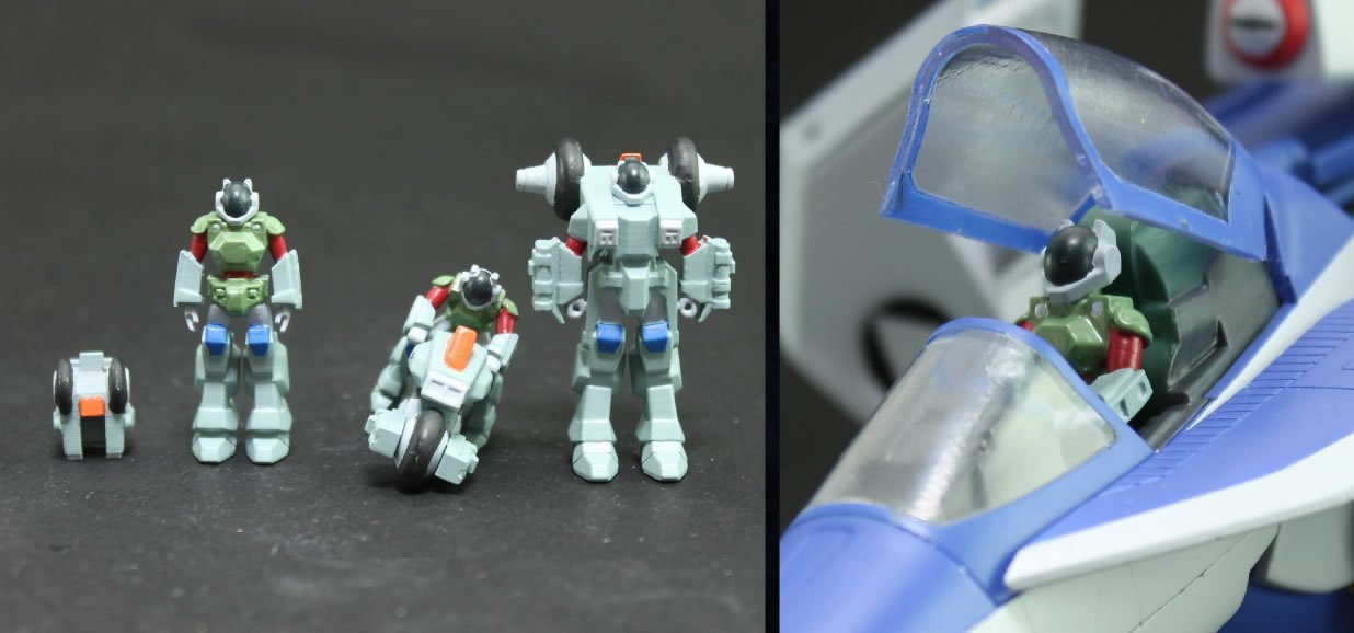 différentes 1/35, 1/55, et 5 pouces, fabriqué par Gakken, qui sont distribués sous divers marques telle que "GAKKEN", "MATCHBOX", EXCITE/GAKKEN (the henshin robo)" ET que la version 1/55 pouces ne se transforme pas en mode avion.